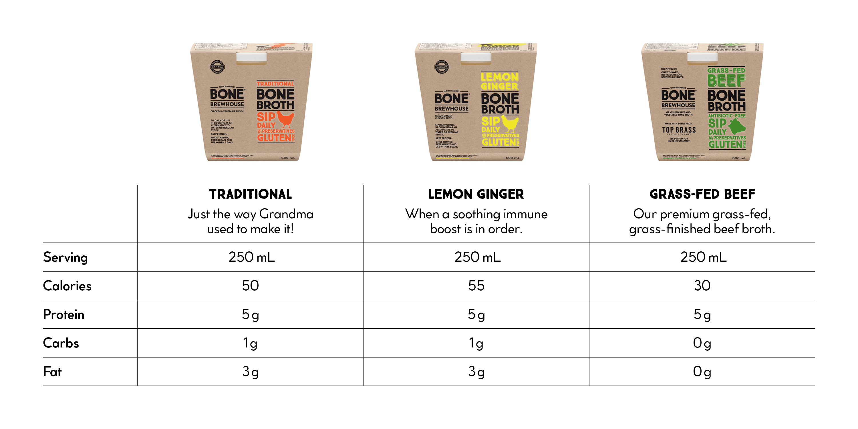 Our 3 delicious frozen bone broth flavours!